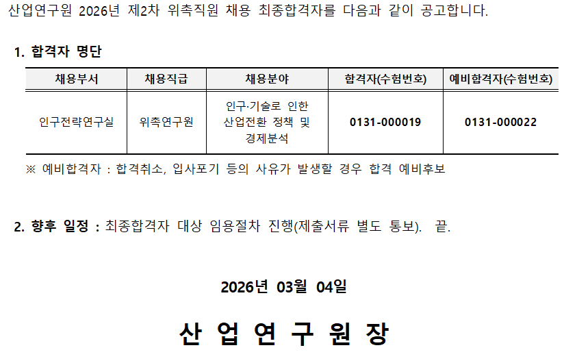 2026년 제2차 위촉직 채용 2차 전형(면접심사) 합격자 공고