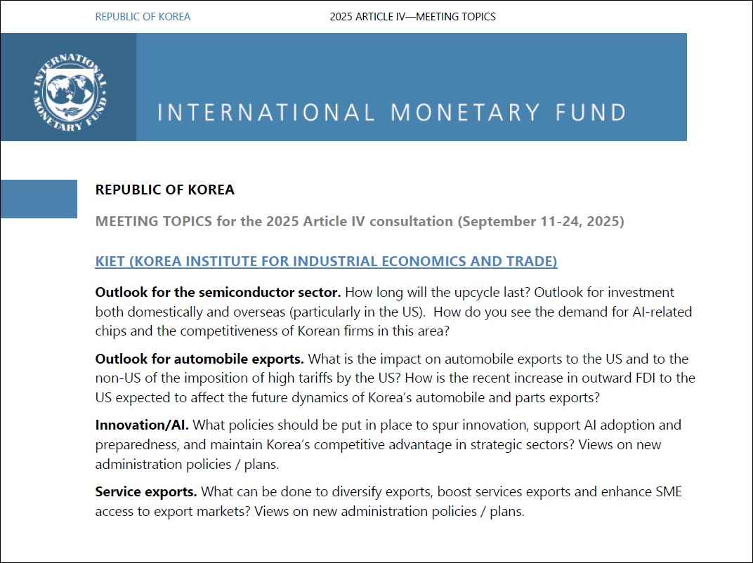 In September 2025, KIET hosted the International Monetary Fund (IMF) mission team as part of the Article IV Consultation. This marks the third consecutive time that KIET has contributed to the annual consultation process.