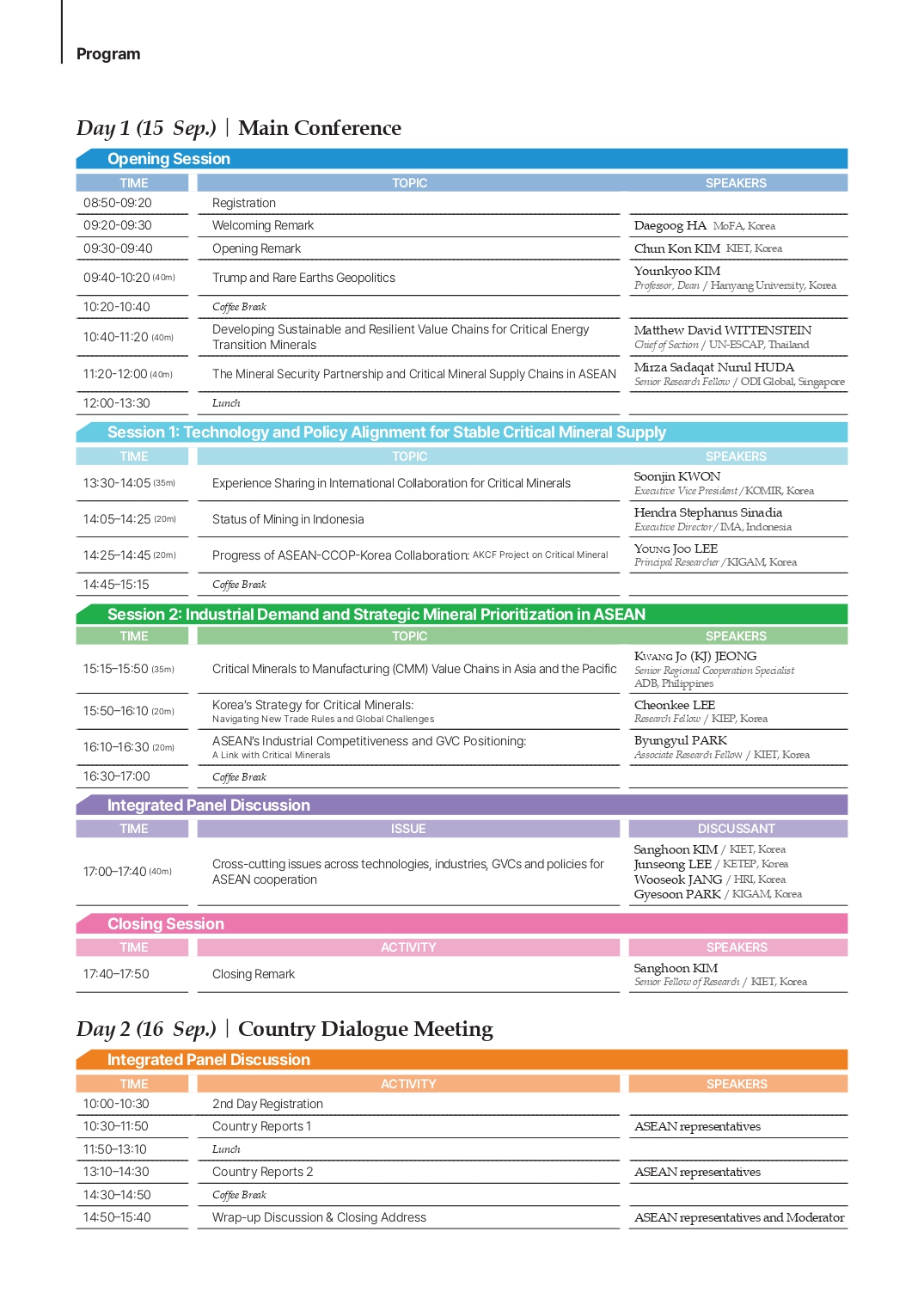 | 본문요약 | ○ 일시: 2025. 9. 15(월)~16일(화) ○ 장소: 서울 프레이저 플레이스 센트럴 서대문홀 ○ 주최: 산업연구원(KIET)과 아시아지질자원위원회(CCOP) ○ 후원: 한-아세안협력기금(AKCF) |