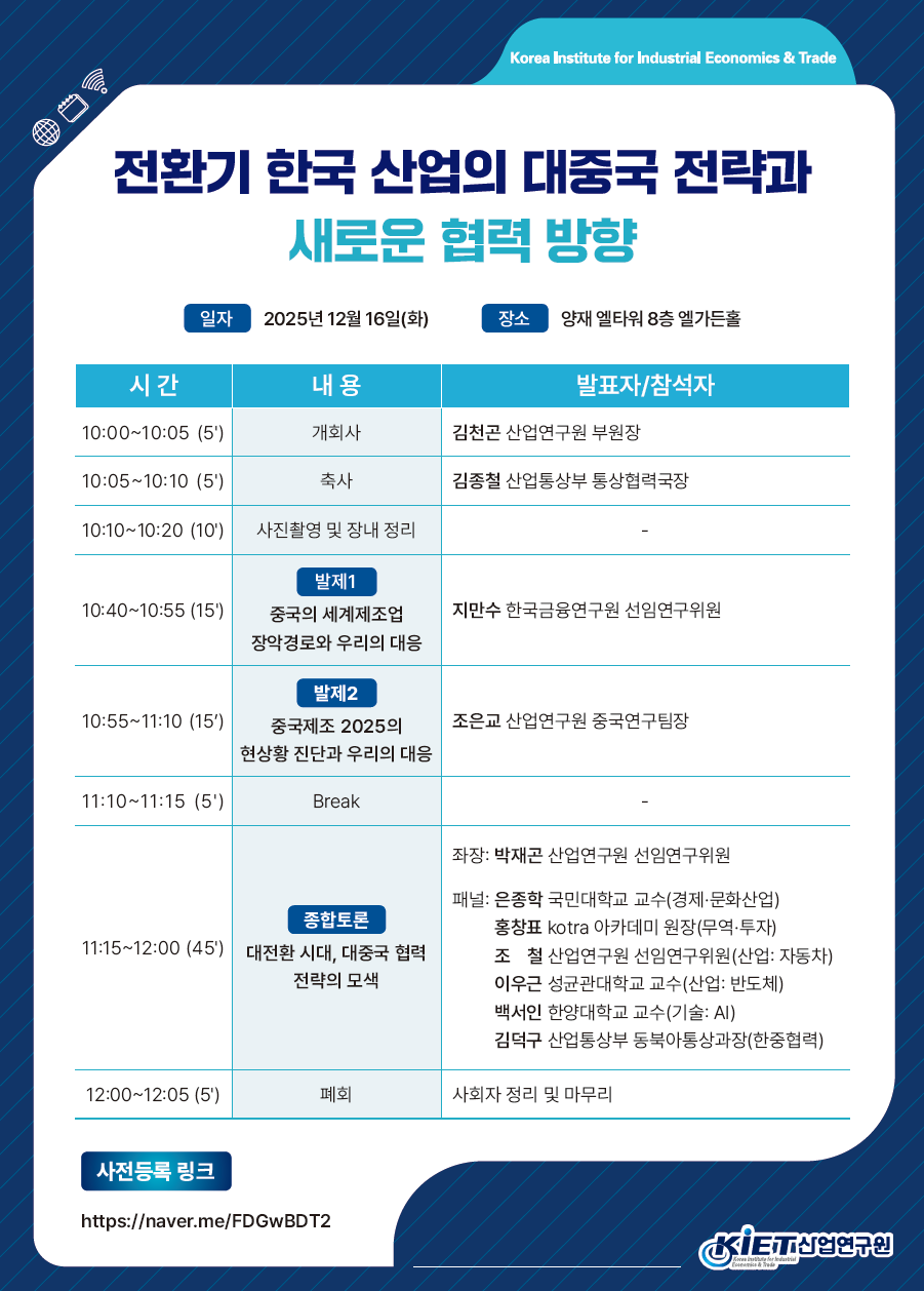 전환기 한국 산업의 대중국 전략과 새로운 협력 방향 2025-12-10